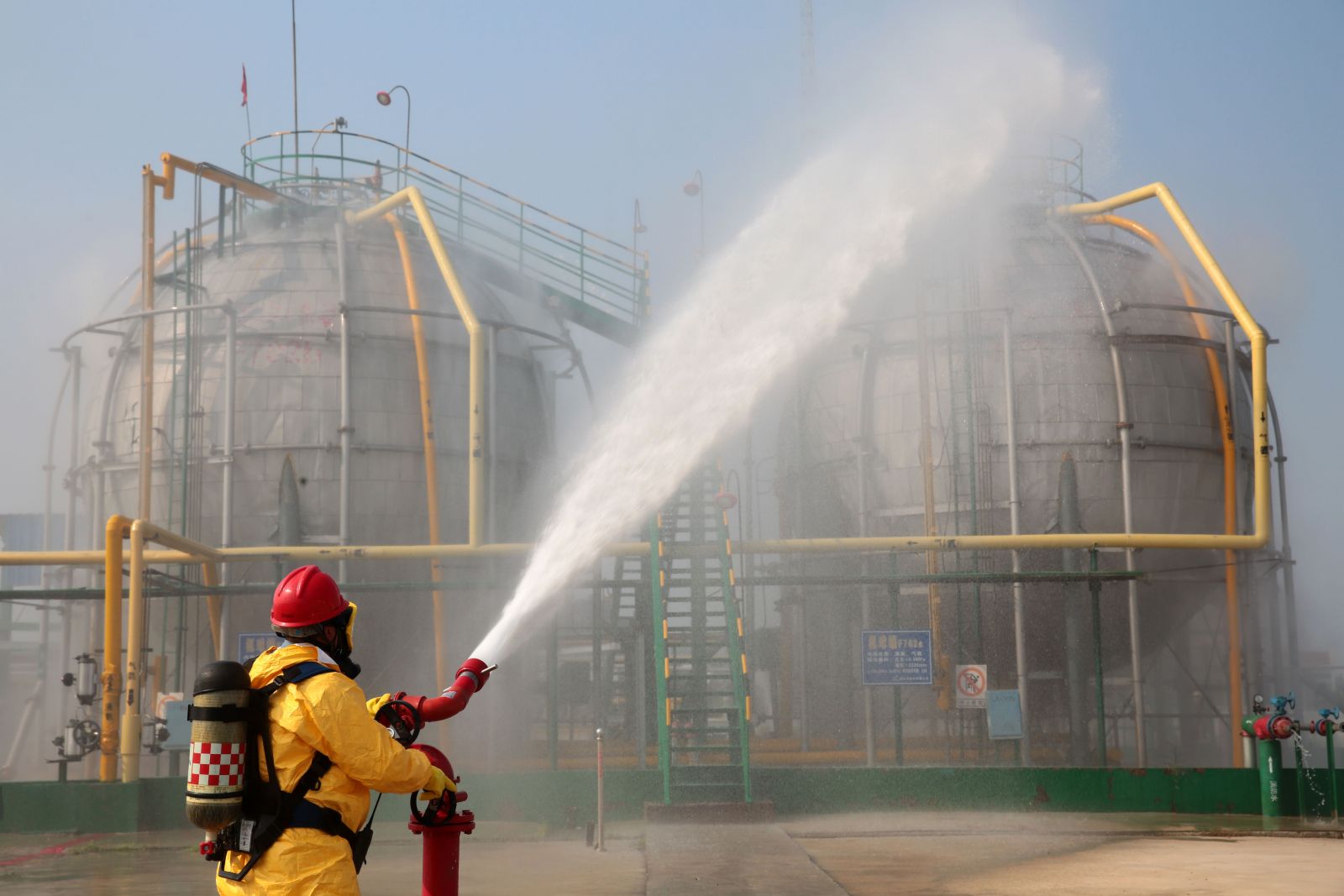為檢驗(yàn)公司應(yīng)急救援時(shí)各環(huán)節(jié)的協(xié)調(diào)能力和應(yīng)急救援預(yù)案的可操作性,提高應(yīng)急人員在緊急情況下妥善處置突發(fā)事件的實(shí)戰(zhàn)能力,9月5日,公司以“液氨庫(kù)B球罐底部發(fā)生泄漏,現(xiàn)場(chǎng)當(dāng)班工人中毒”為假想事故,在液氨庫(kù)舉行秋季危險(xiǎn)化學(xué)品生產(chǎn)安全事故應(yīng)急救援演練。