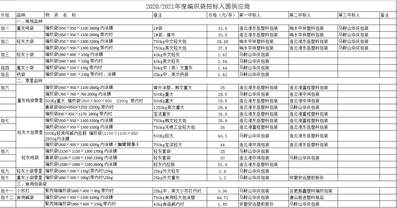 連云港堿業(yè)有限公司編織袋招標(biāo)評(píng)審結(jié)果公示