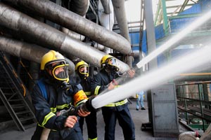 公司黨委書記、董事長張衛(wèi)民,黨委副書記、總經理李清菊,副總經理焦旺盛參加演練并提要求。健康安全環(huán)保部消防隊、熱電車間抽調精兵強將參加這次突發(fā)事件應急預案實戰(zhàn)演練。