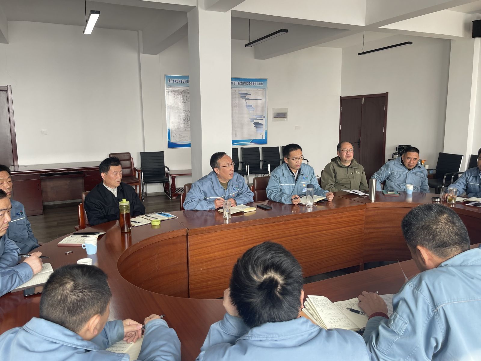 3月6日上午9:30,公司在灌云新項(xiàng)目部召開搬遷升級改造項(xiàng)目例會(huì)。公司黨委書記、董事長張衛(wèi)民同志,黨委副書記、副董事長、總經(jīng)理姜自成同志,公司領(lǐng)導(dǎo)鈕維社、劉軍、焦旺盛、黃建德、高二飛、楊全及各部門領(lǐng)導(dǎo)等30余人參加了會(huì)議。