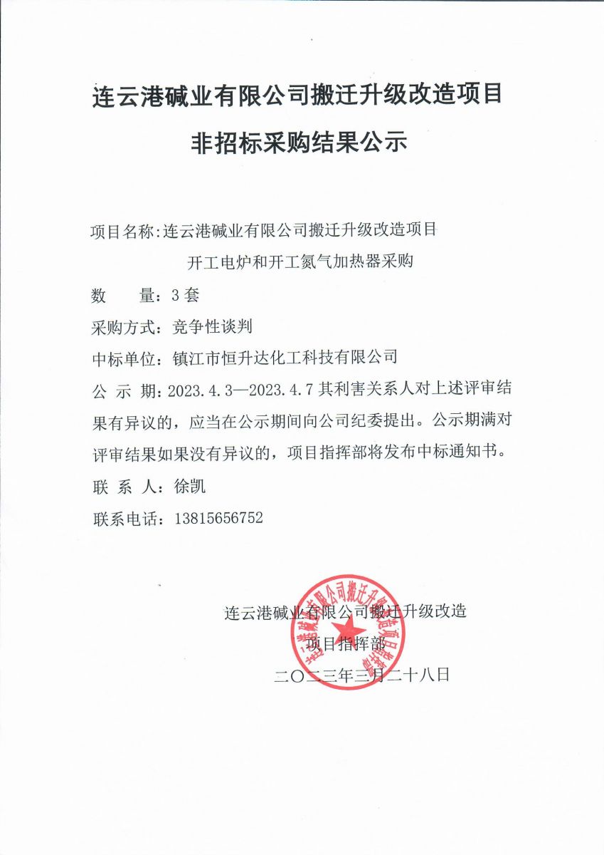 開工電爐和開工氮氣加熱器非招標采購結(jié)果公示