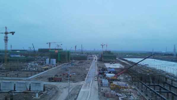 ⑵聯(lián)堿二標(biāo)段611鹽硝車間破樁完成;523結(jié)晶工段框架6~10軸一層梁驗收完成;614真空制鹽循環(huán)水站外排水池土方回填;562聯(lián)堿循環(huán)水站框架西側(cè)池壁驗收完成,水池破樁;524干銨工段7~12軸一層模板支撐架搭設(shè);503變電所3外架搭設(shè),內(nèi)架開始搭設(shè);525包裝及儲運8-16軸梁板模板鋪設(shè)、1-7軸內(nèi)架搭設(shè);506機柜間1一層梁板柱梯澆筑;601變電所2外架搭設(shè)。