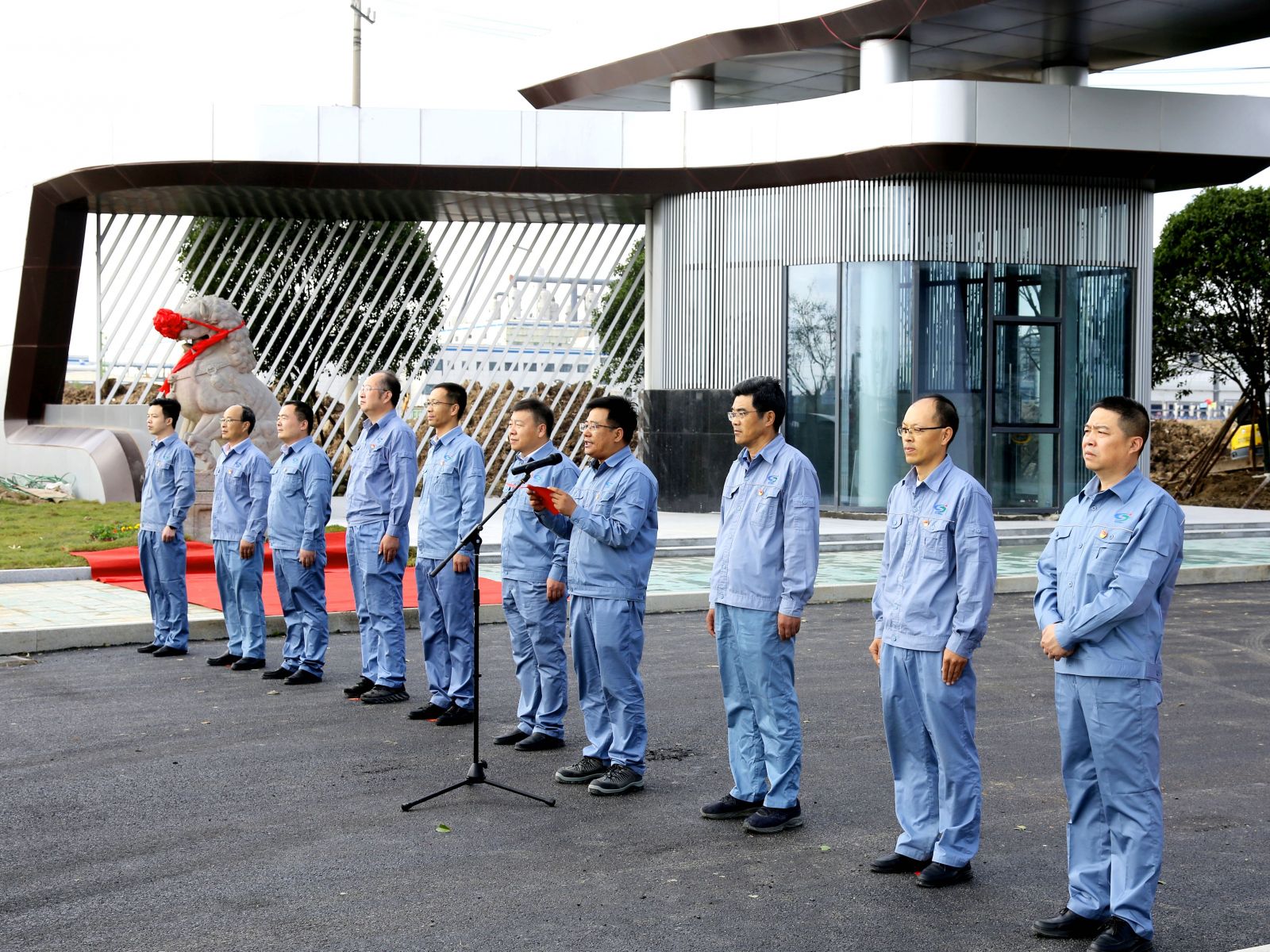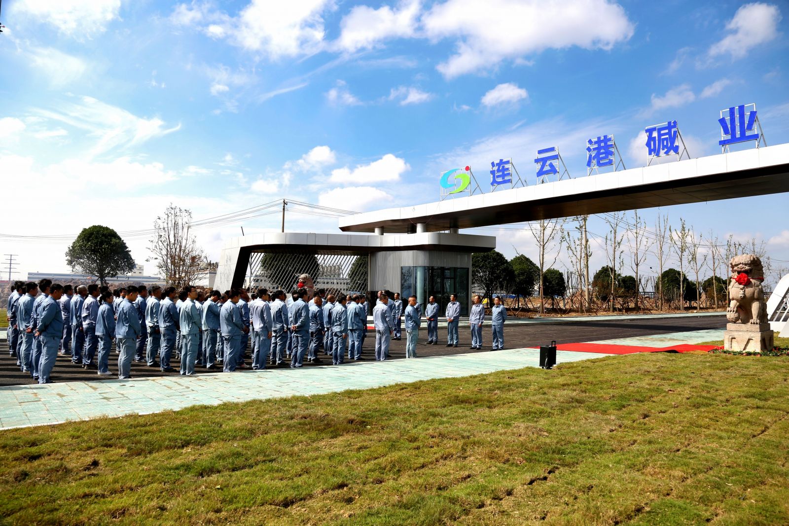 儀式上,姜自成、延立強為廠前區(qū)石獅揭幕。據(jù)悉,這一對石獅與老堿廠風(fēng)雨兼程近三十年,見證了老堿廠的興起、輝煌和衰落,是堿業(yè)公司歷史傳承的一分子,是堿業(yè)公司企業(yè)文化的一分子,是全體堿業(yè)人深刻記憶的一分子。如今,這對石獅落成在全新的堿業(yè)公司,必然成為堿業(yè)公司新發(fā)展的守護者,必然成為堿業(yè)公司新篇章的見證者,必然成為全體堿業(yè)人新精神的守望者。它們時刻提醒著我們不忘初心、銘記歷史,同時也鼓舞著我們勇往直前、開拓創(chuàng)新。