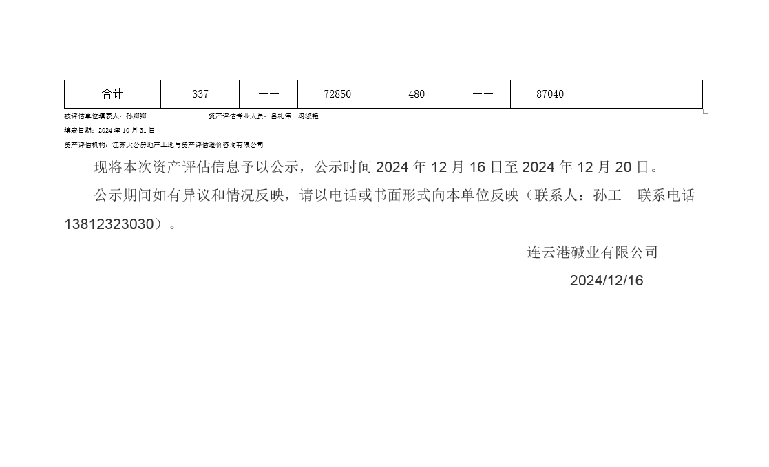 連云港堿業(yè)有限公司佟圩路附近供水管線資產(chǎn)評估公示